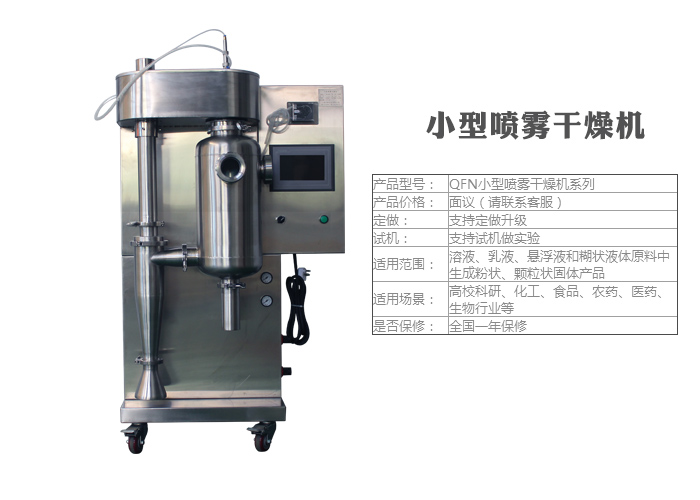 Fourth, in the use of a small pharmaceutical small spray dryer, it is necessary to ensure that the equipment has a good sealing effect, will not bring new pollution sources, and the inner wall is smooth and flat, and the structure should be simplified as far as possible, easy to clean, reliable operation.Click into the details.