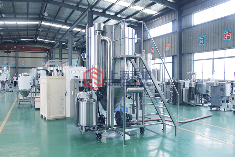 為了防止材料受到污染并延長(zhǎng)設(shè)備的使用壽命,與材料接觸的所有部件均由不銹鋼制成。 噴涂后,液體霧化成分散的顆粒,表面積大大增加。 在與熱空氣接觸后,干燥過程可以在很短的時(shí)間內(nèi)完成。 在正常條件下,100%至98%的水可在100至150℃下蒸發(fā)1至3秒。 由于干燥過程在瞬間完成,因此最終產(chǎn)品的顆粒可以基本上保持與液滴類似的球形,從而具有良好的分散性,優(yōu)異的可沖泡性和高溶解性。