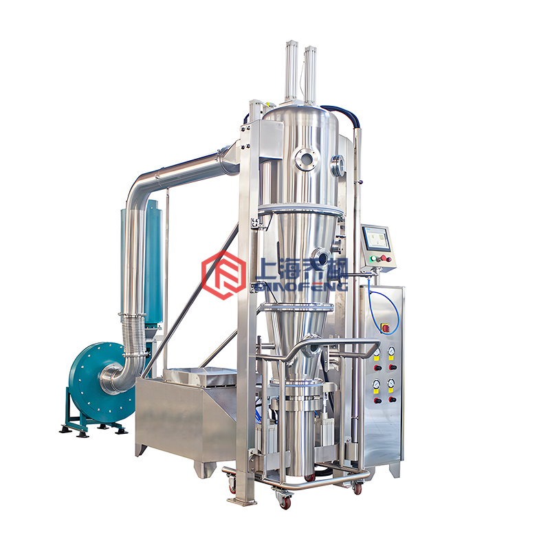 將制粒用粉末或包衣用顆粒(粉)物料投入流化床內(nèi),冷空氣從主機(jī)后部加熱室進(jìn)入,經(jīng)初效.中效過濾.加熱器加熱至進(jìn)風(fēng)所需溫度后進(jìn)入流化床,粉末(顆粒)在床內(nèi)呈流態(tài)化,制粒用粘結(jié)劑由輸液泵送入雙流體霧化器,經(jīng)霧化后噴向流化的物料。掩味、防潮、防氧化、防水、隔熱、著色、隔離包衣。