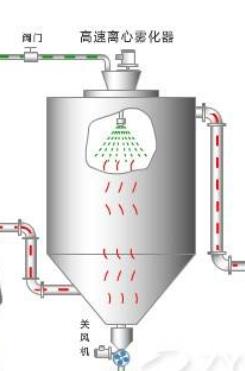 經過過濾和加熱后,空氣進入干燥機頂部的空氣分配器,熱空氣以螺旋狀均勻進入干燥室。 物料液體通過塔身頂部的高速離心霧化器或高壓霧化器噴入非常細的霧狀液珠中,并且可以在很短的接觸時間內干燥成成品 與空氣平行。 成品從干燥塔和旋風分離器的底部連續輸出,細粉塵通過脈沖袋式集塵器收集,廢氣通過風扇排出。