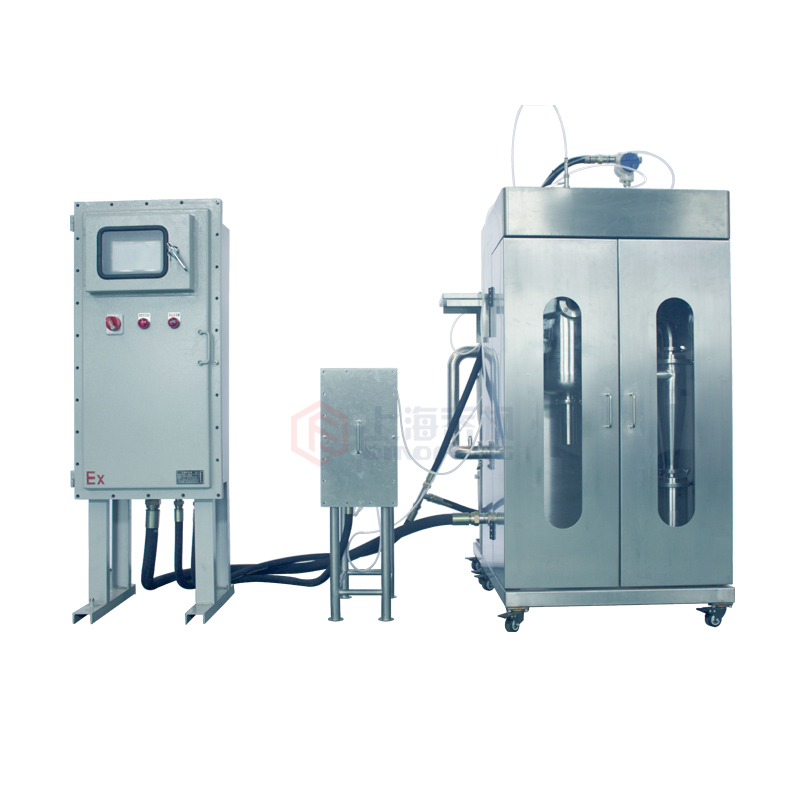 包含:配料罐、溶劑罐、輸料蠕動(dòng)泵、輸料管路、霧化器,首先將配置好的漿料投入配料罐,攪拌均勻后在蠕動(dòng)泵的驅(qū)動(dòng)下,漿料通過管路閥門到達(dá)霧化器,霧化器需要配備上海喬楓特制的防爆霧化器噴頭,噴頭壽命保修使用一年。
