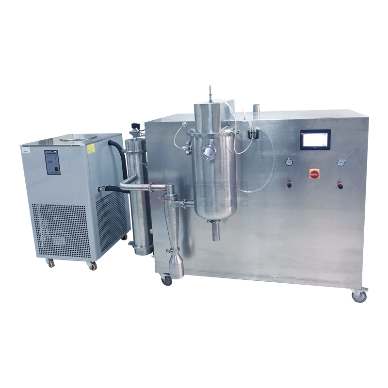 低溫噴霧干燥機(jī)及其主要適用于高校、研究所和食品,醫(yī)藥,化工,企業(yè),實驗室生產(chǎn)微量顆粒粉末,對溶液如乳濁液、懸浮液具有廣譜適用性, 適用于對熱敏感性物的干燥如生物制品、生物農(nóng)藥、酶制劑等,因所噴出的物料只是在噴成霧狀大小霧滴時,才受到干燥風(fēng)系統(tǒng),故只是瞬間受熱,能保持這些活性材料在干燥后仍維持其活性成份不受破壞。該型噴霧干燥機(jī)可以實現(xiàn)在常溫下進(jìn)行噴霧干燥的低溫霧化干燥及高低溫霧化干燥兩用機(jī)型。